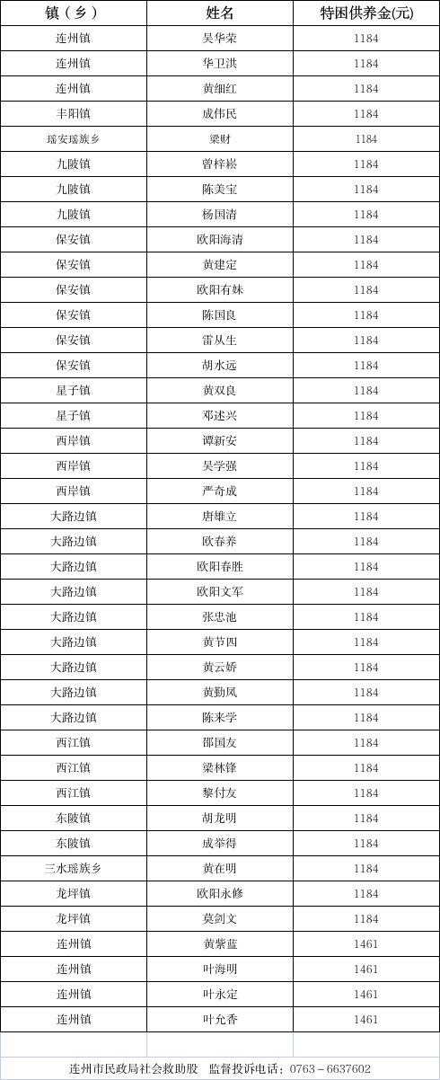 2025年10月新增特困對象名單