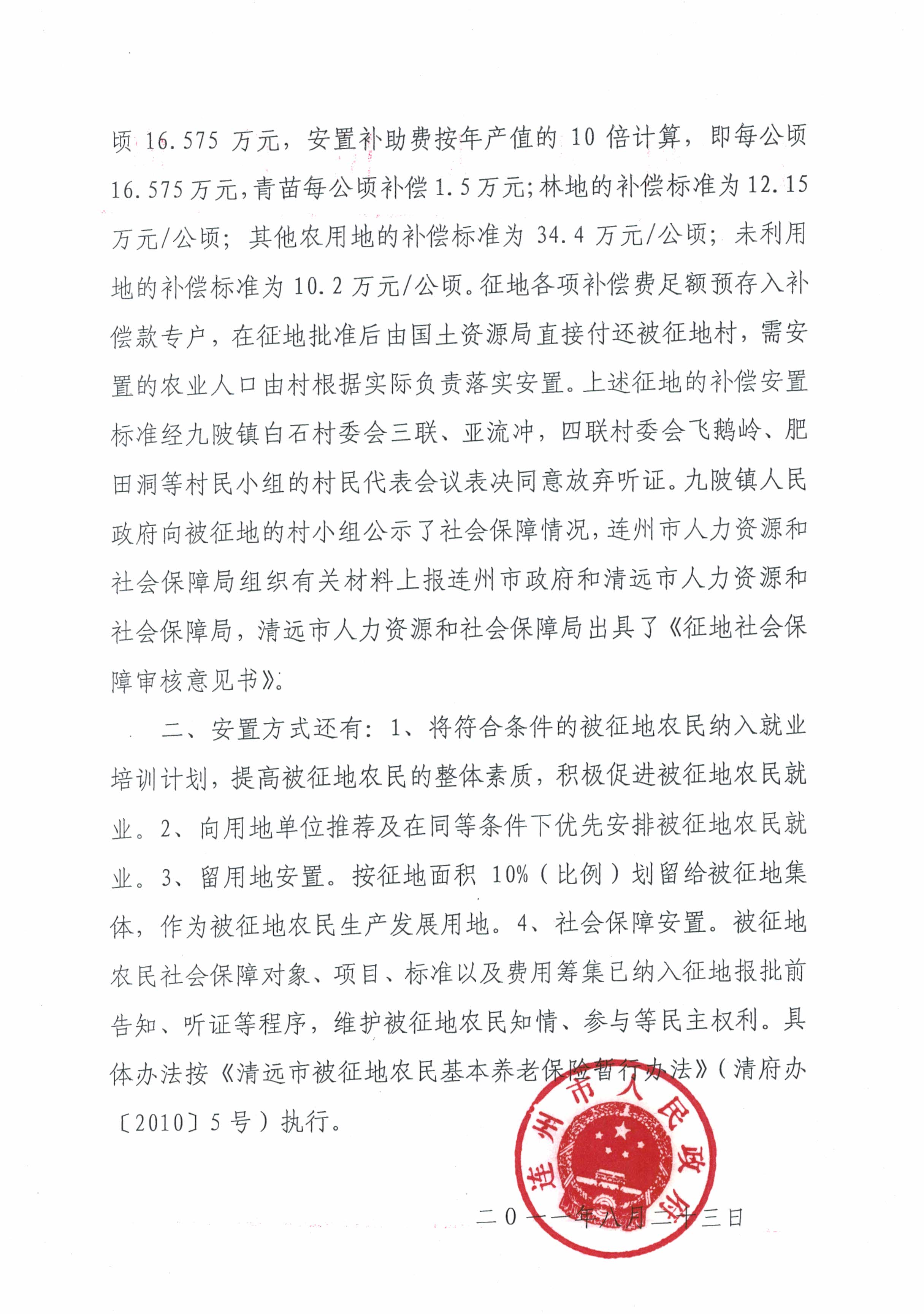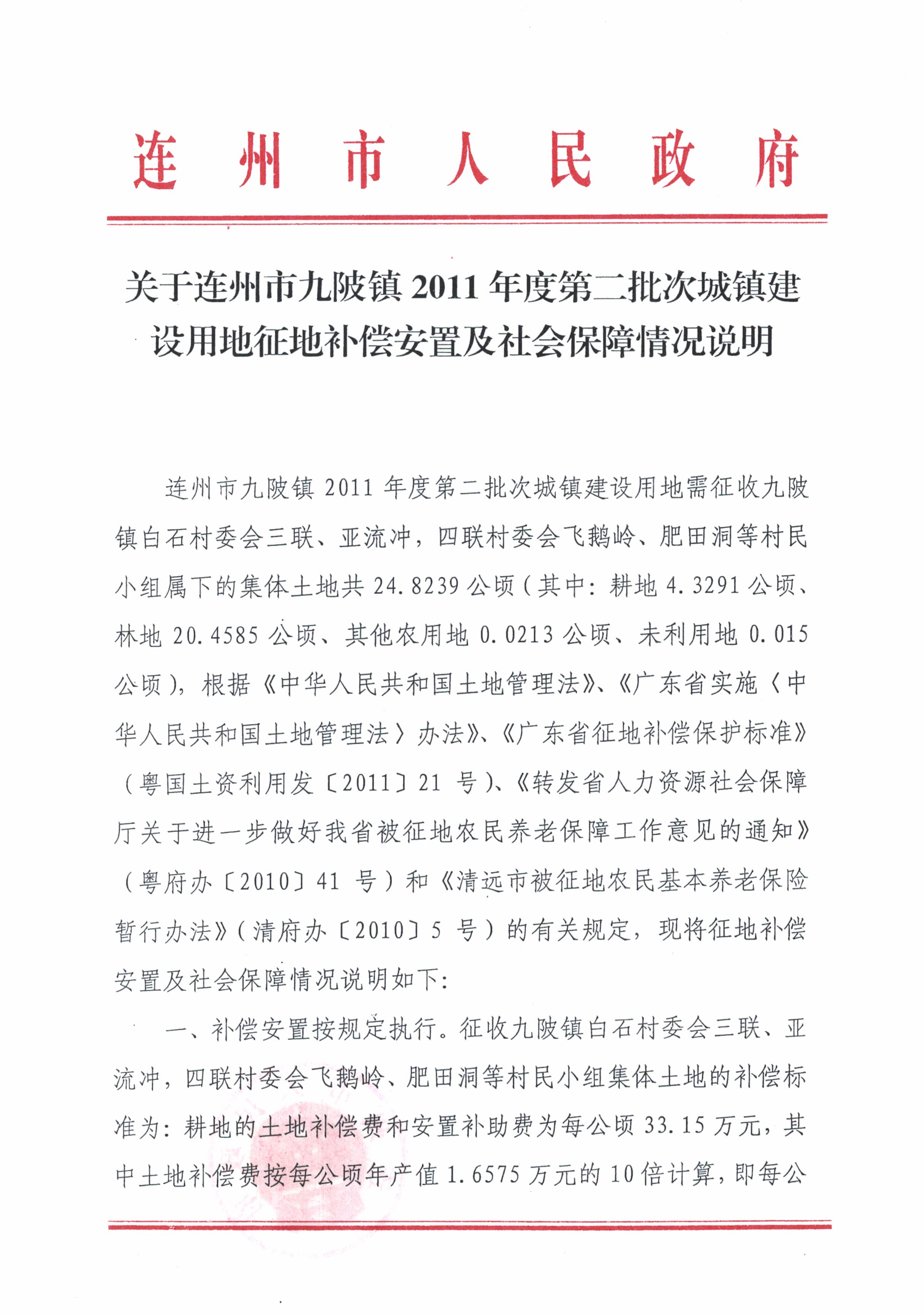 連州市九陂鎮(zhèn)2011年度第二批次城鎮(zhèn)建設(shè)用地補(bǔ)償安置方案公告