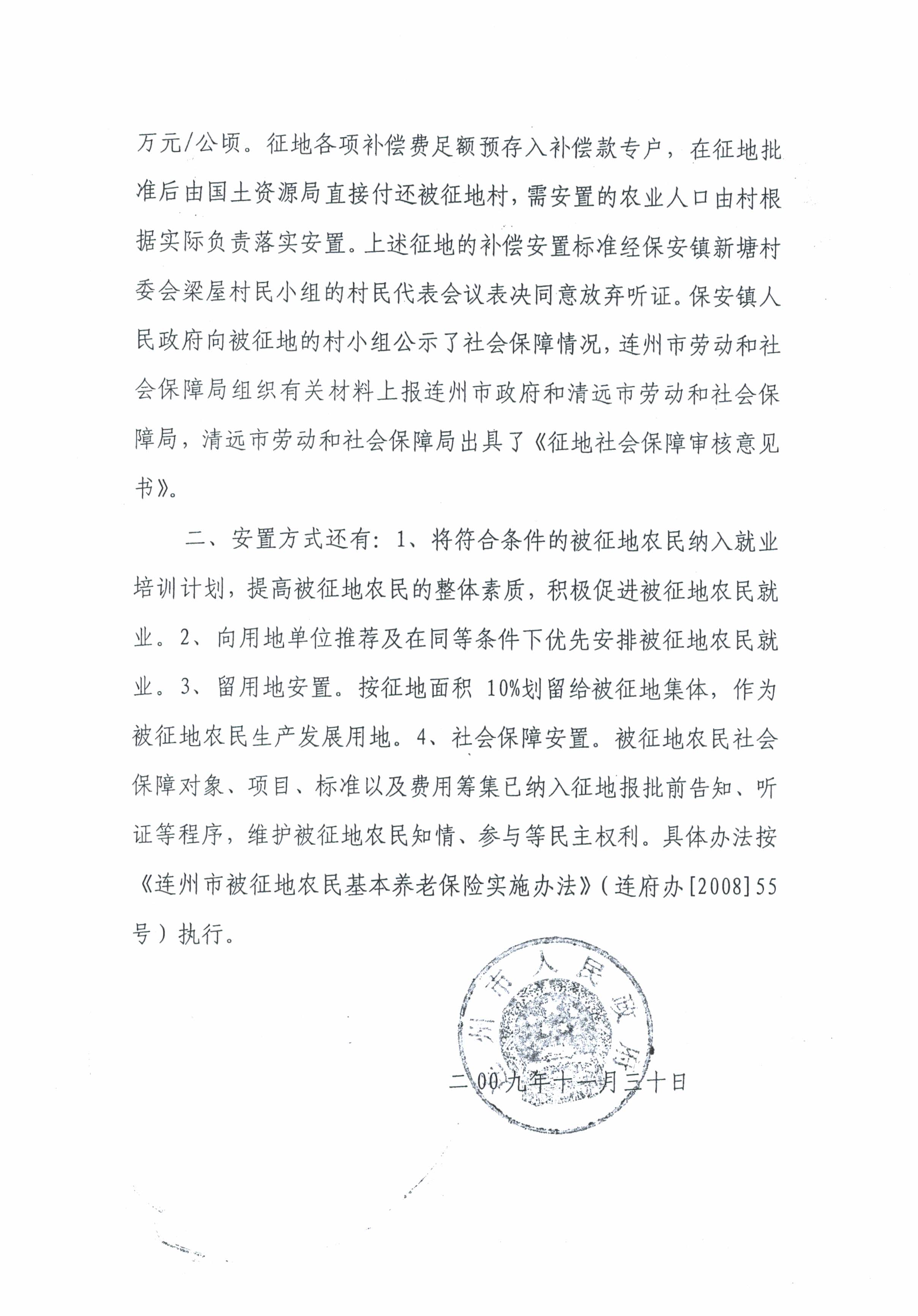 連州市保安鎮(zhèn)2009年度第二批次城鎮(zhèn)建設(shè)用地補(bǔ)償安置方案公告
