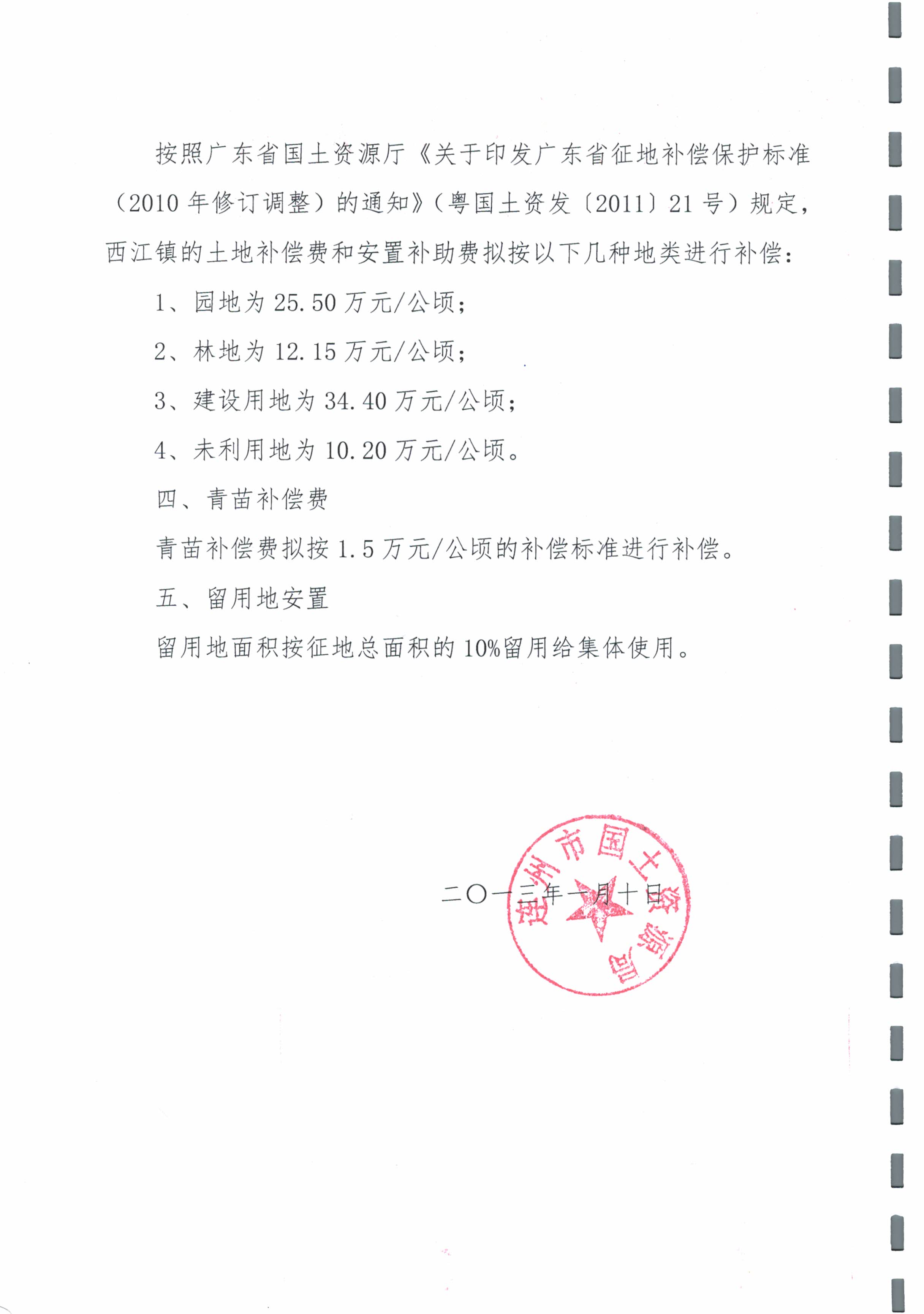 連州市西江鎮(zhèn)2012年度第一批次城鎮(zhèn)建設(shè)用地補(bǔ)償安置方案公告
