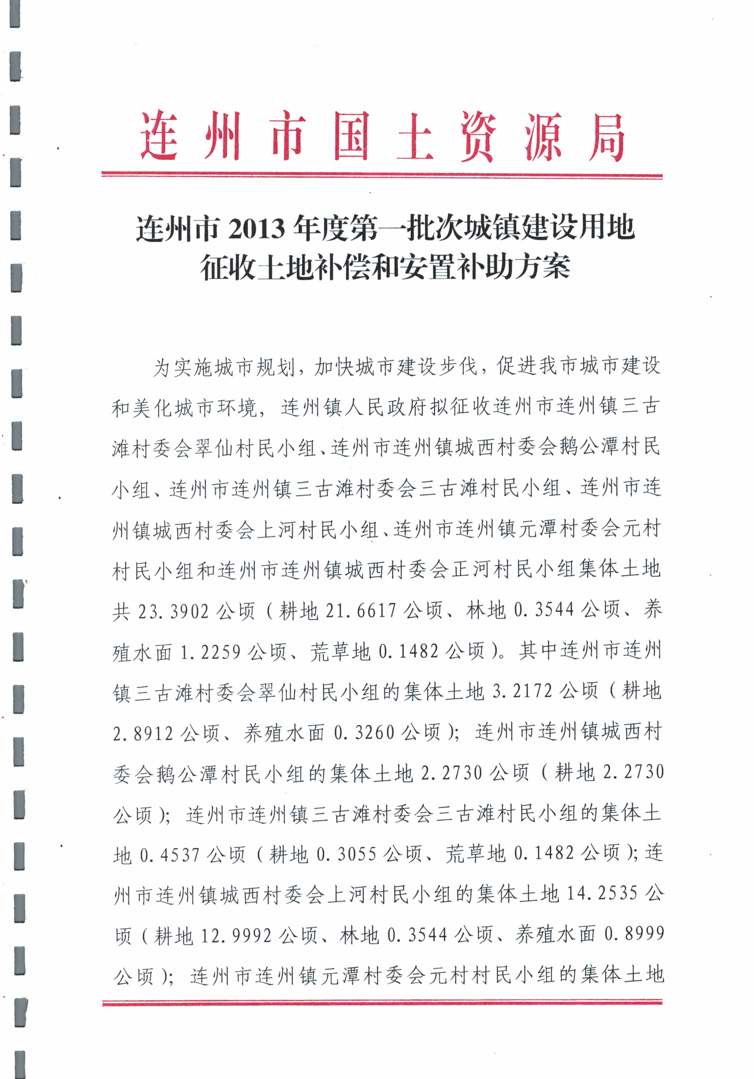 連州市2013年度第一批次城鎮(zhèn)建設(shè)用地補(bǔ)償安置方案公告