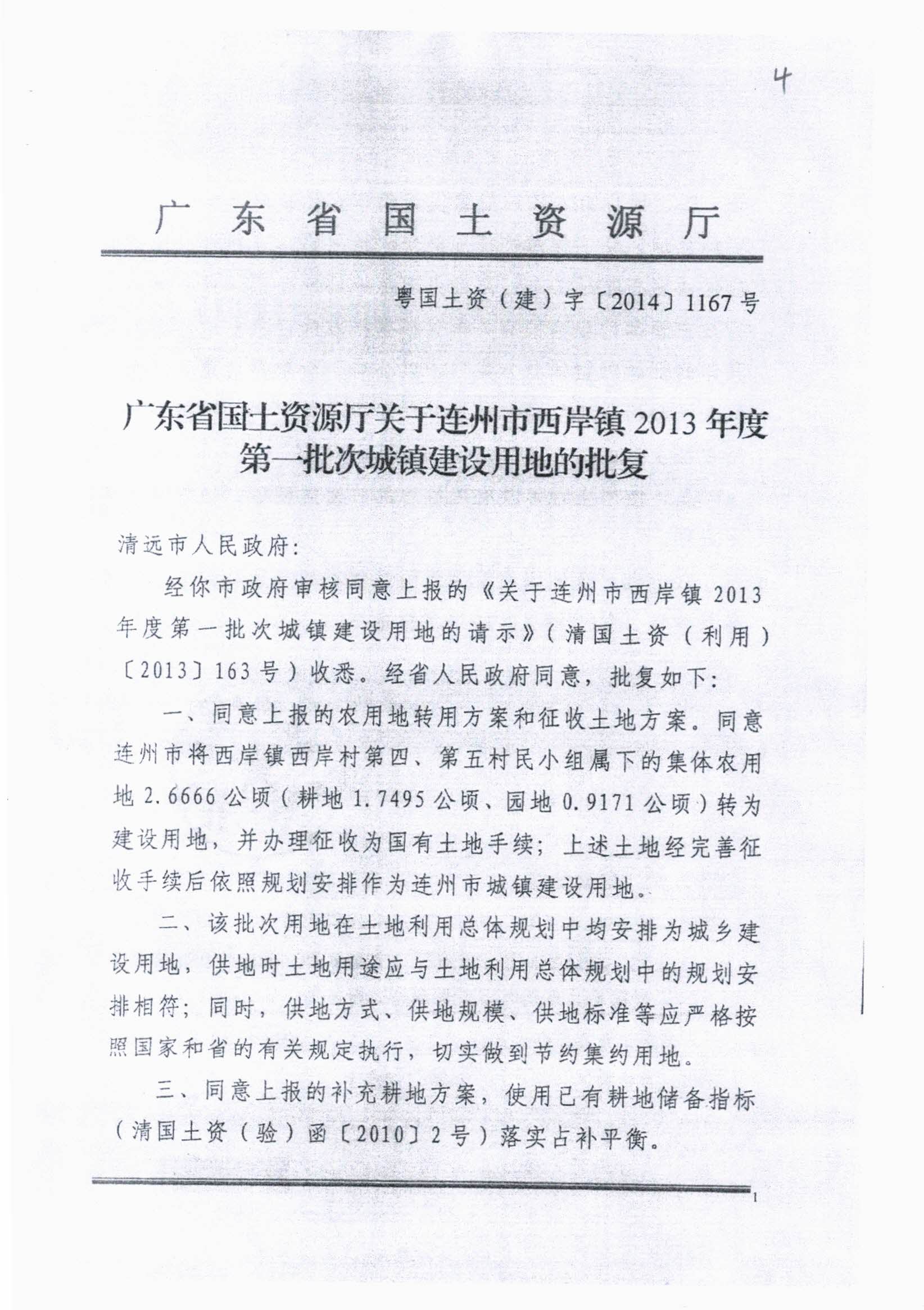 連州市西岸鎮(zhèn)2013年度第一批次城鎮(zhèn)建設(shè)用地征地批準(zhǔn)信息