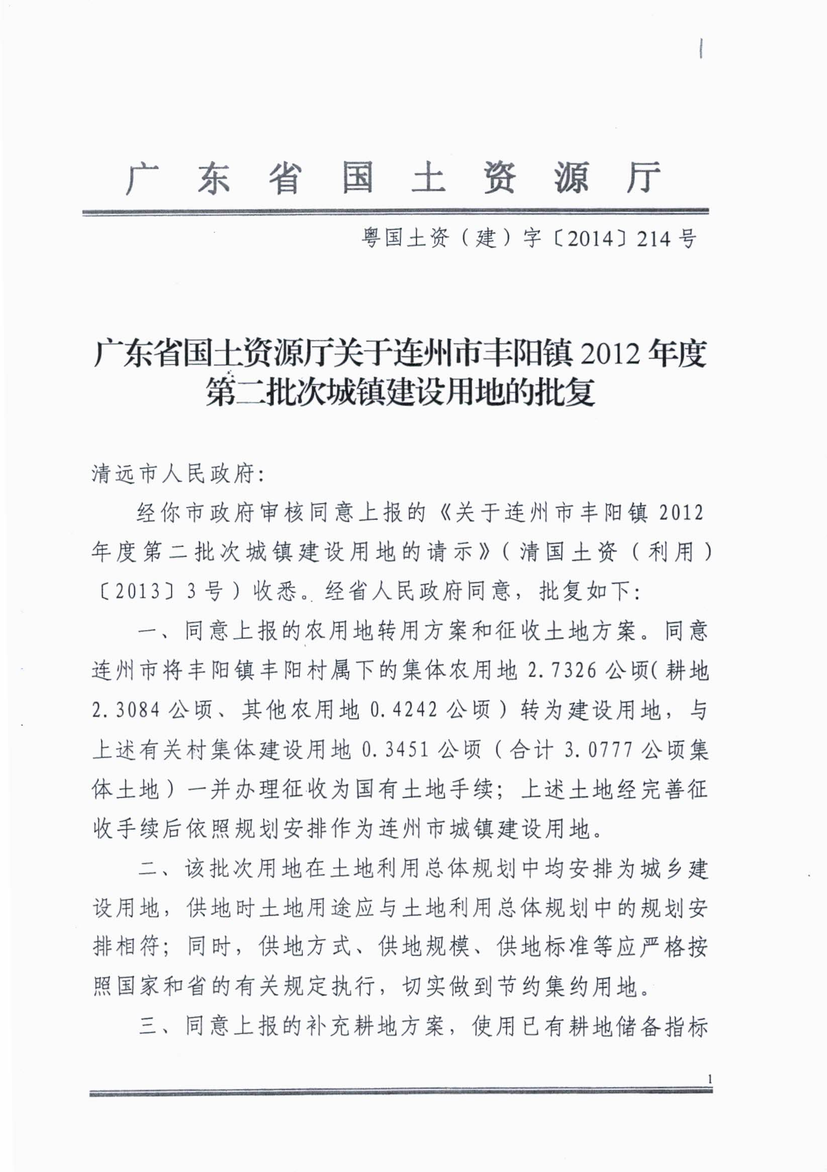連州市豐陽鎮(zhèn)2012年度第二批次城鎮(zhèn)建設(shè)用地征地批準(zhǔn)信息