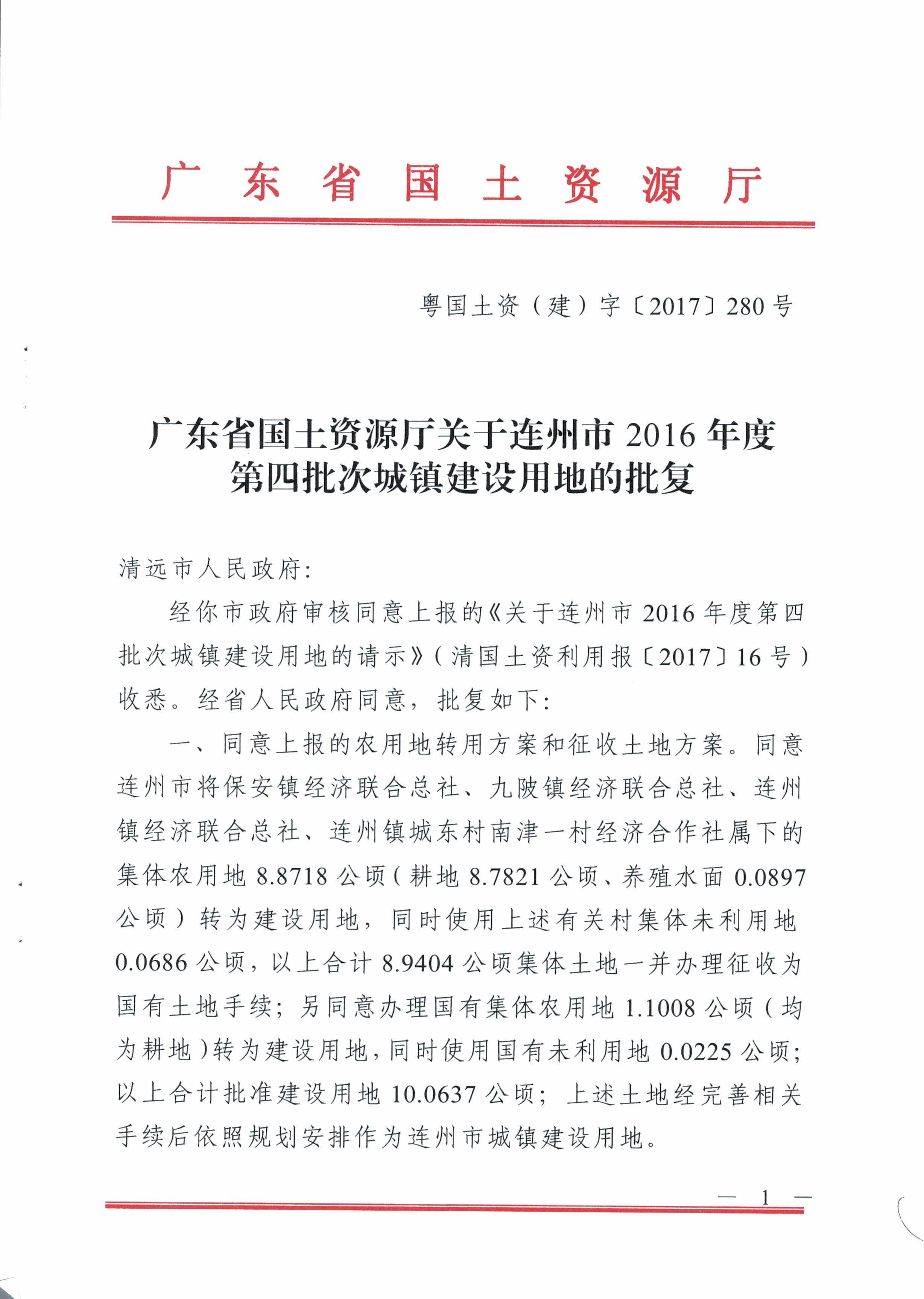 連州市2016年第四批次城鎮(zhèn)建設(shè)用地的批復(fù)