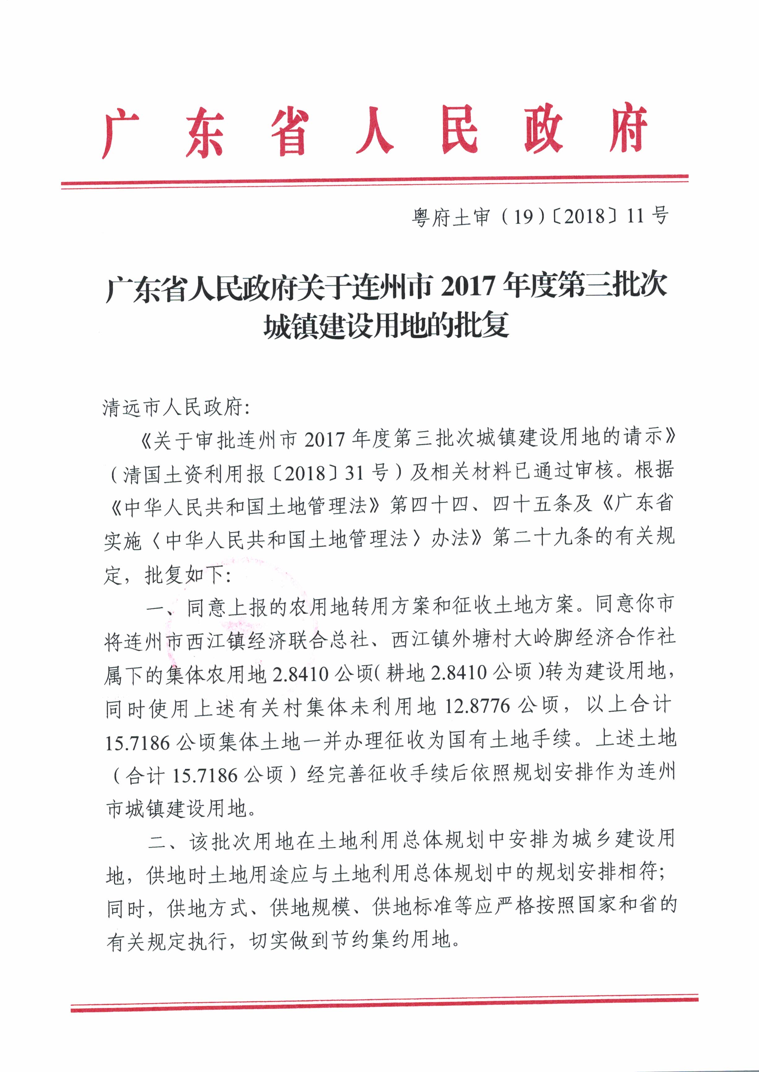 連州市2017年第三批次城鎮(zhèn)建設用地的批復
