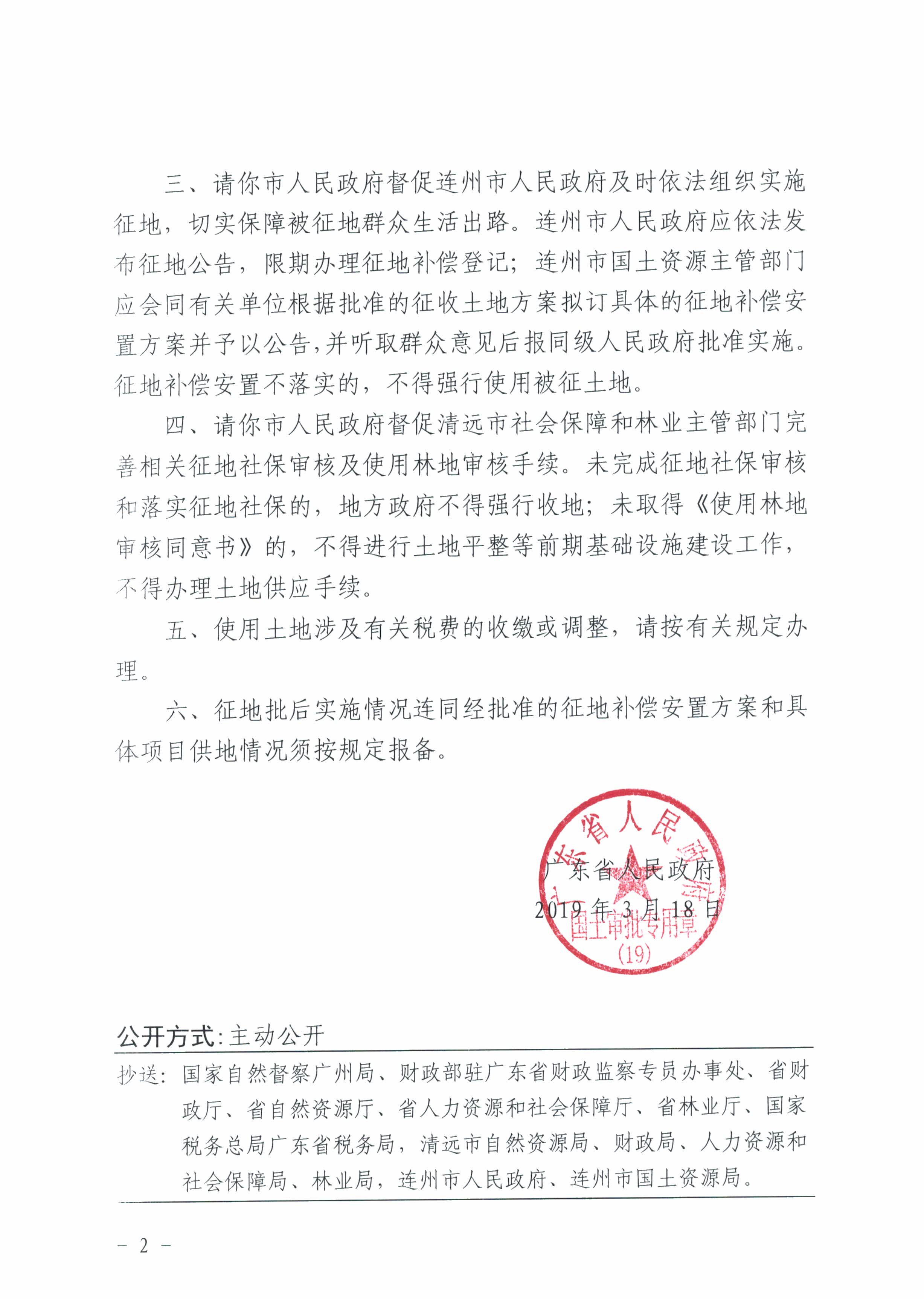 廣東省人民政府關(guān)于清遠(yuǎn)市連州市2018年度第二批次城鎮(zhèn)建設(shè)用地的批復(fù)
