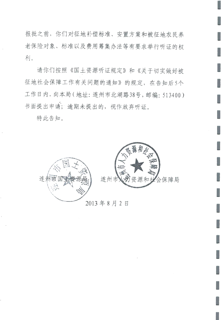 連州市2013年度第一批次城鎮(zhèn)建設(shè)用地聽(tīng)證信息