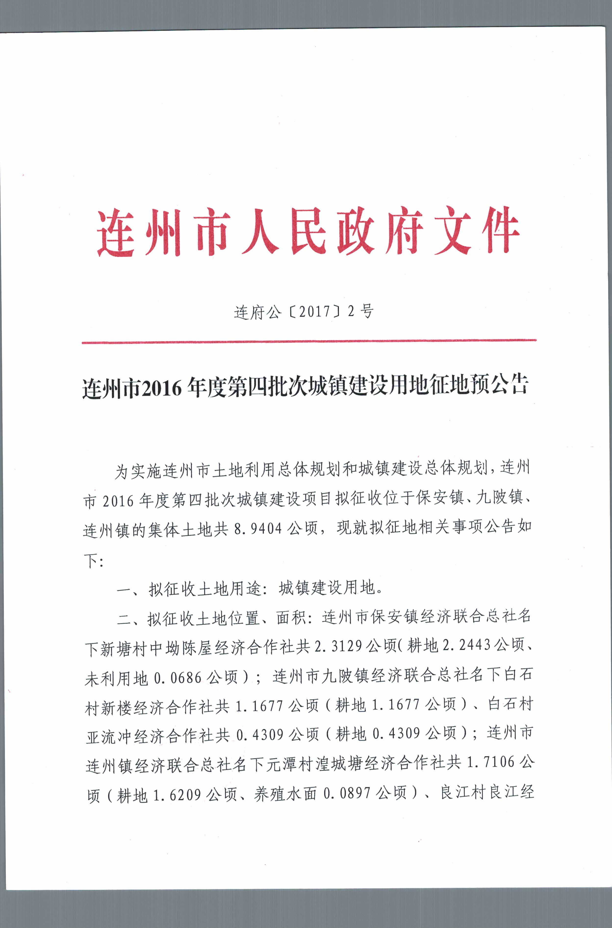 連州市2016第四批次城鎮(zhèn)建設(shè)用地征地預(yù)公告