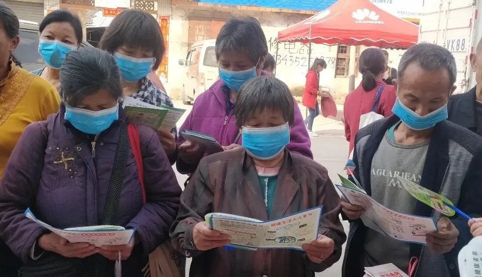 ▲工作人員向群眾發(fā)放愛(ài)國(guó)衛(wèi)生宣傳資料
