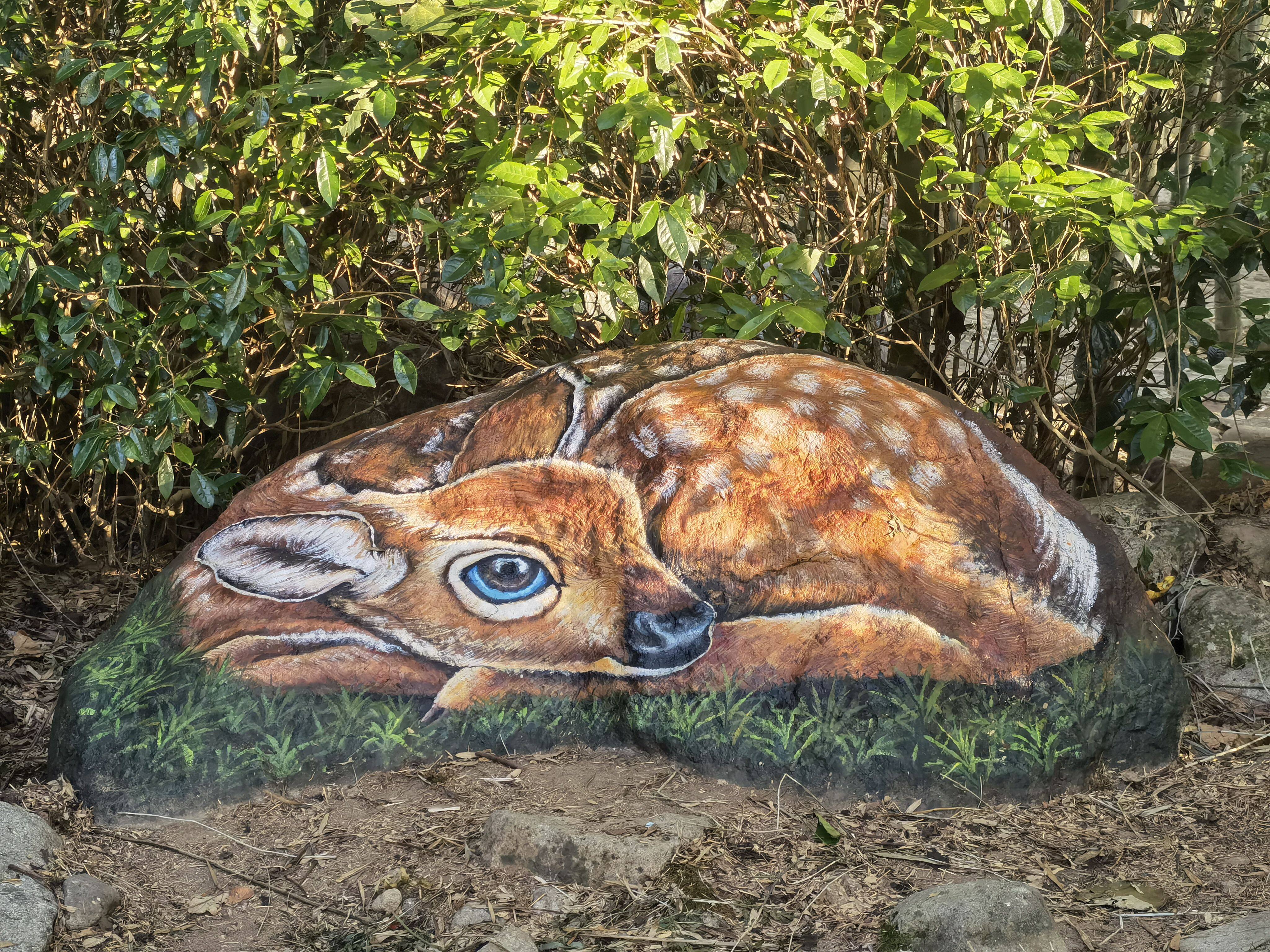 石頭上栩栩如生的動(dòng)物3D彩繪