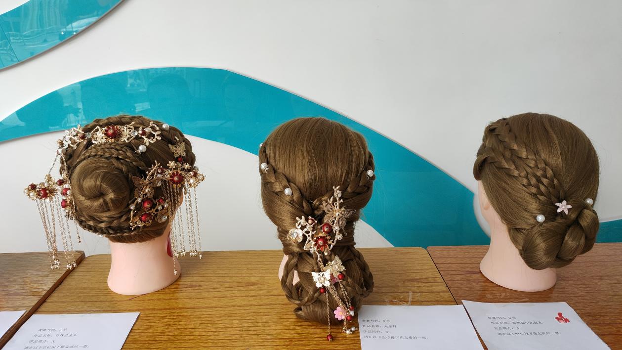 在美容產(chǎn)業(yè)學院里,開展美甲競賽和盤發(fā)競賽,同學們經(jīng)過創(chuàng)意設計,完成了甲面彩繪、立體雕花等作品,并結合傳統(tǒng)盤發(fā)技藝與現(xiàn)代造型理念,完成古風發(fā)髻、晚宴發(fā)型等作品,同時還開展了美甲、頭模和美容禮儀展示,充分展示產(chǎn)教融合的建設成果。