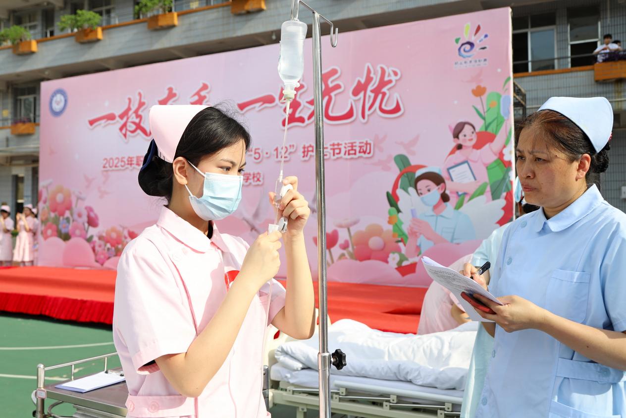 5月9日,開展“5·12”護士節(jié)慶祝活動,護理專業(yè)學生展示了心肺復蘇和靜脈輸液技能。在心肺復蘇技能展示環(huán)節(jié),通過模擬急救場景,展現(xiàn)扎實的專業(yè)功底。在靜脈輸液技能展示環(huán)節(jié),學生嚴格遵循無菌操作原則,每一個步驟都有條不紊、規(guī)范精準。學生們還進行了風采展示,獲得陣陣掌聲。從精準的靜脈穿刺到規(guī)范的無菌操作,從人文關懷溝通到團隊協(xié)作處置,每一個細節(jié)都彰顯出護理事業(yè)的嚴謹與溫度。